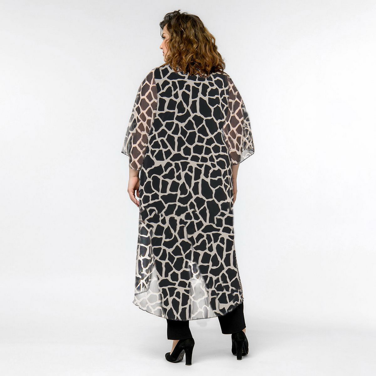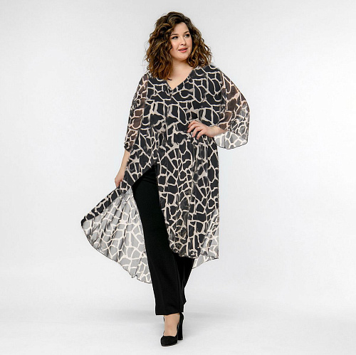 Легкая удлиненная туника с разрезом спереди и широкими рукавами из шифона.