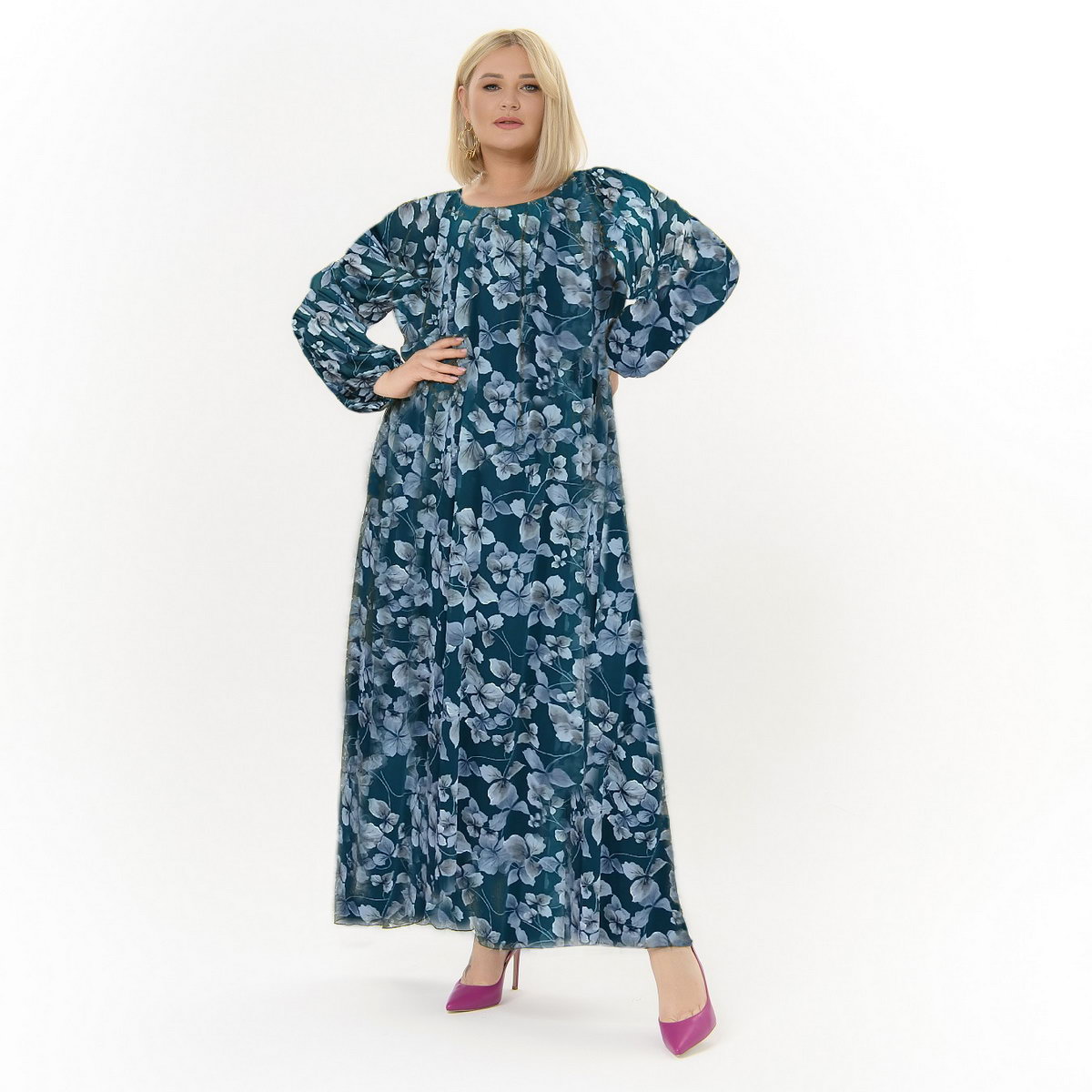 Длинное, вечернее, струящееся платье из тончайшего принтованого шифона.