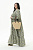 По горловине платья планочка, образующая V-вырез, и плосколежащая стоечка. Рукав втачной, свободный, на резиночке по низу,