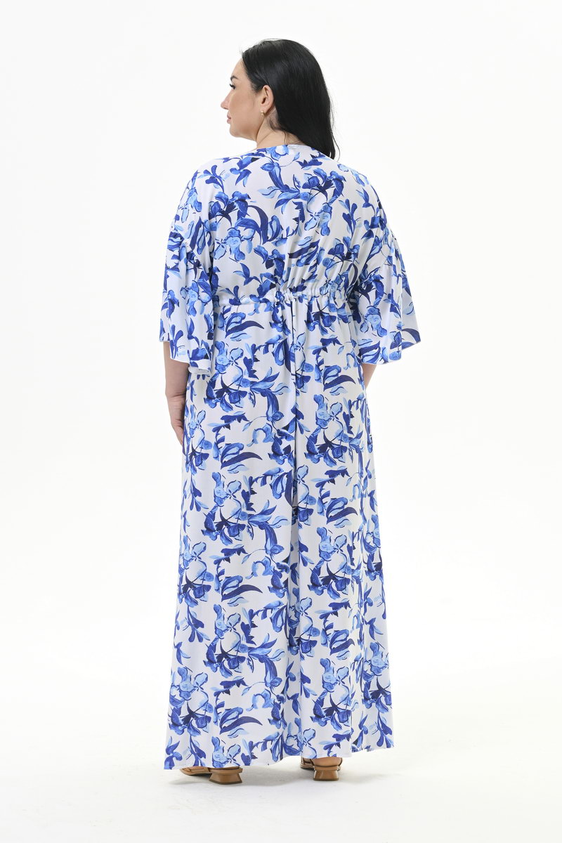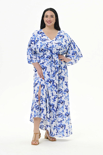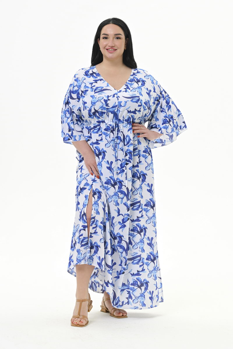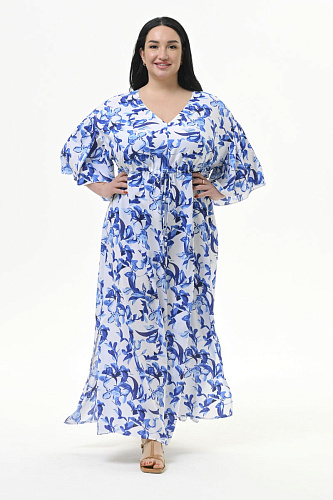 Легкое, оригинальное, свободное, длинное платье из 100% вискозы. Верхняя часть переда с V - вырезом.