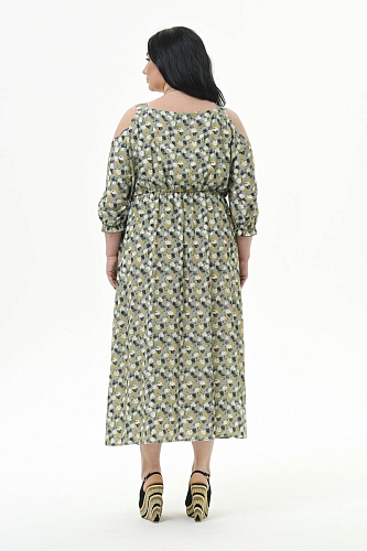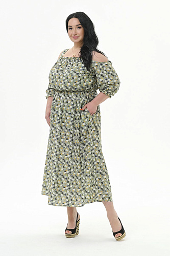 Платье-сарафан из 100% вискозы. Верхняя часть отрезная, со сборочкой по лифу, на бретелях (ширина бретели 4 см), конструктивно продумана и ненавязчиво приоткрывает зону плеч. Рукав свободный, закрывает локоть, по низу на резинке.  По шву соединения юбки с лифом резинка, не стесняющая движений, но одновременно прорисовывающая линию талии. В боковых швах юбки карманы.