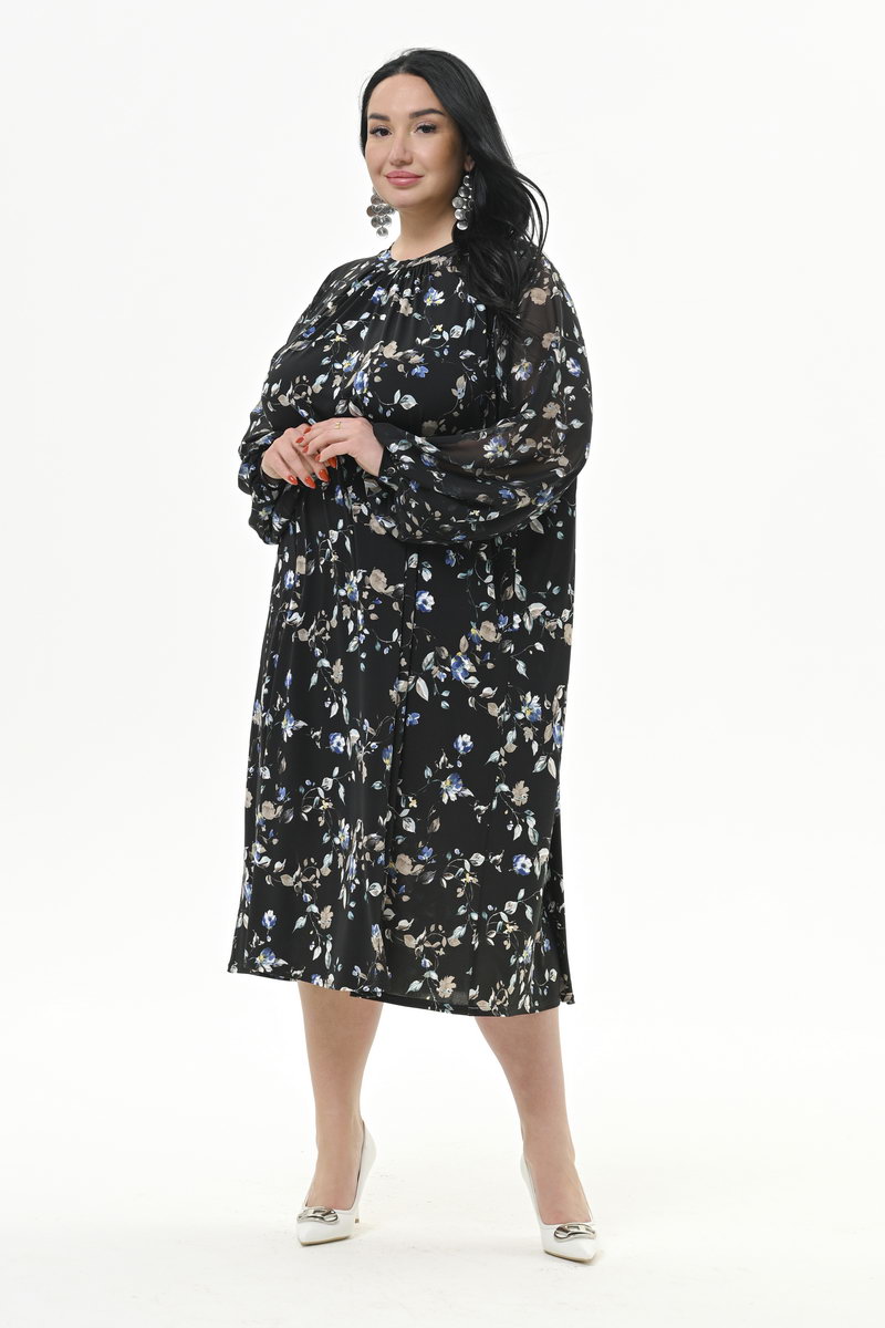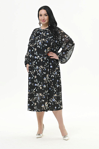 Основа платья, планочка обработки горловины и манжеты выполнены из струящегося трикотажа - "масло",