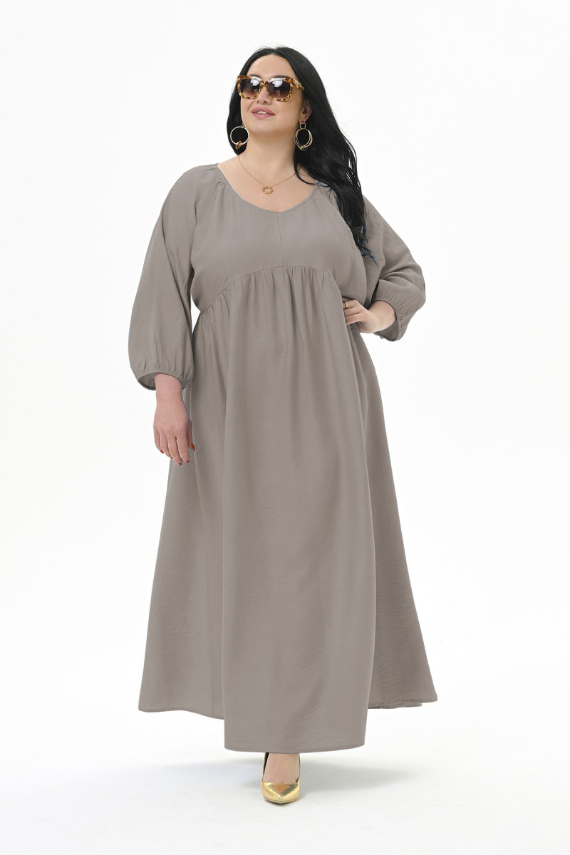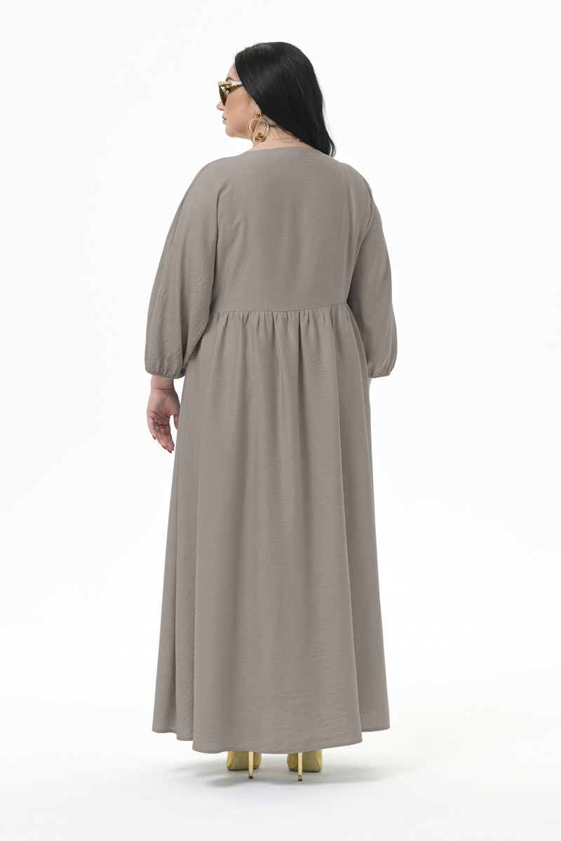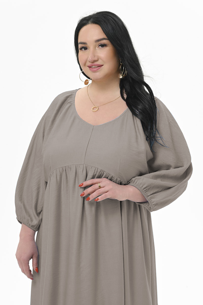 Роскошное, свободное, длинное платье из фактурной плательной вискозы. По переду V-вырез "мягкой" формы.На уровне линии груди плавный подрез, переходящий на спинке в ровную линию. Нижняя часть платья присборенная. Рукав цельнокроенный, свободный, по низу на резиночке. Ткань платья легкая, но вместе с тем прочная, с рельефной поверхностью.Приятная и мягкая на ощупь, обладает матовым блеском и красиво смотрится в изделии. Вискоза, входящая в состав ткани, придает полотну мягкость и воздухопроницаемость, делает его приятным на ощупь, а полиэстер препятствует сминаемости. Материал хорошо подходит для создания повседневного гардероба благодаря своей способности сохранять безупречный внешний вид в течение дня. Если платье помялась, ему достаточно дать отвисеться на вешалке около часа и оно снова приобретет идеальный внешний вид. Состав ткани: 80% - вискоза; 20% - полиэстер. Цвет: "капучино" * длина изделия = 143 см. Рост модели 172 см. На модели представлен размер 60/62.